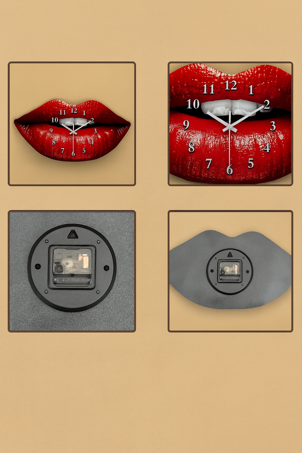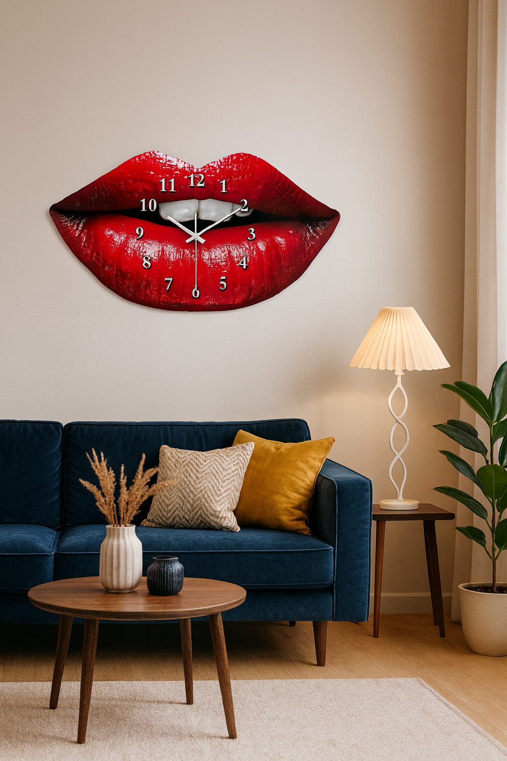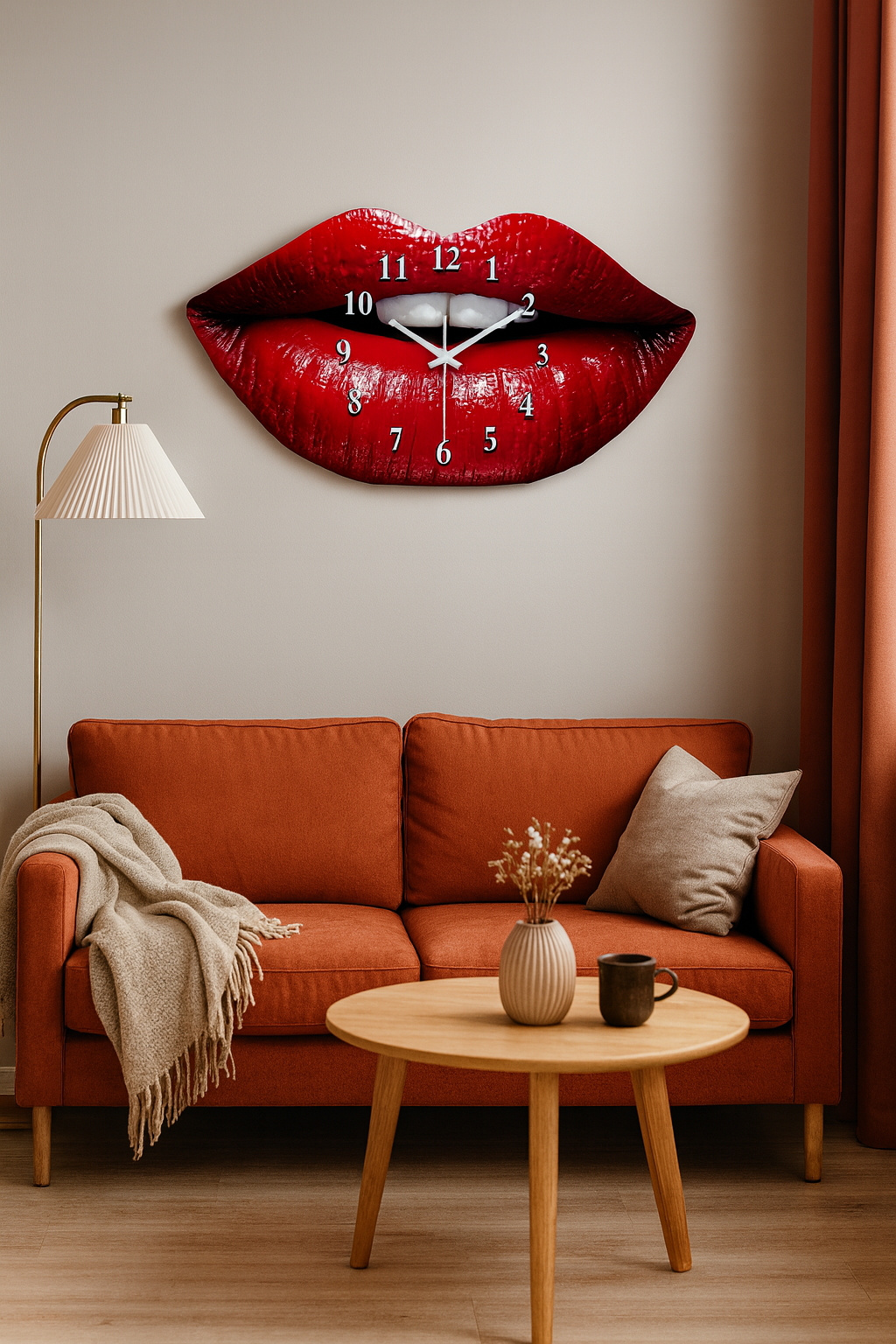 Cette horloge murale en forme de lèvres rouges apporte une touche moderne, audacieuse et amusante à votre décoration.
