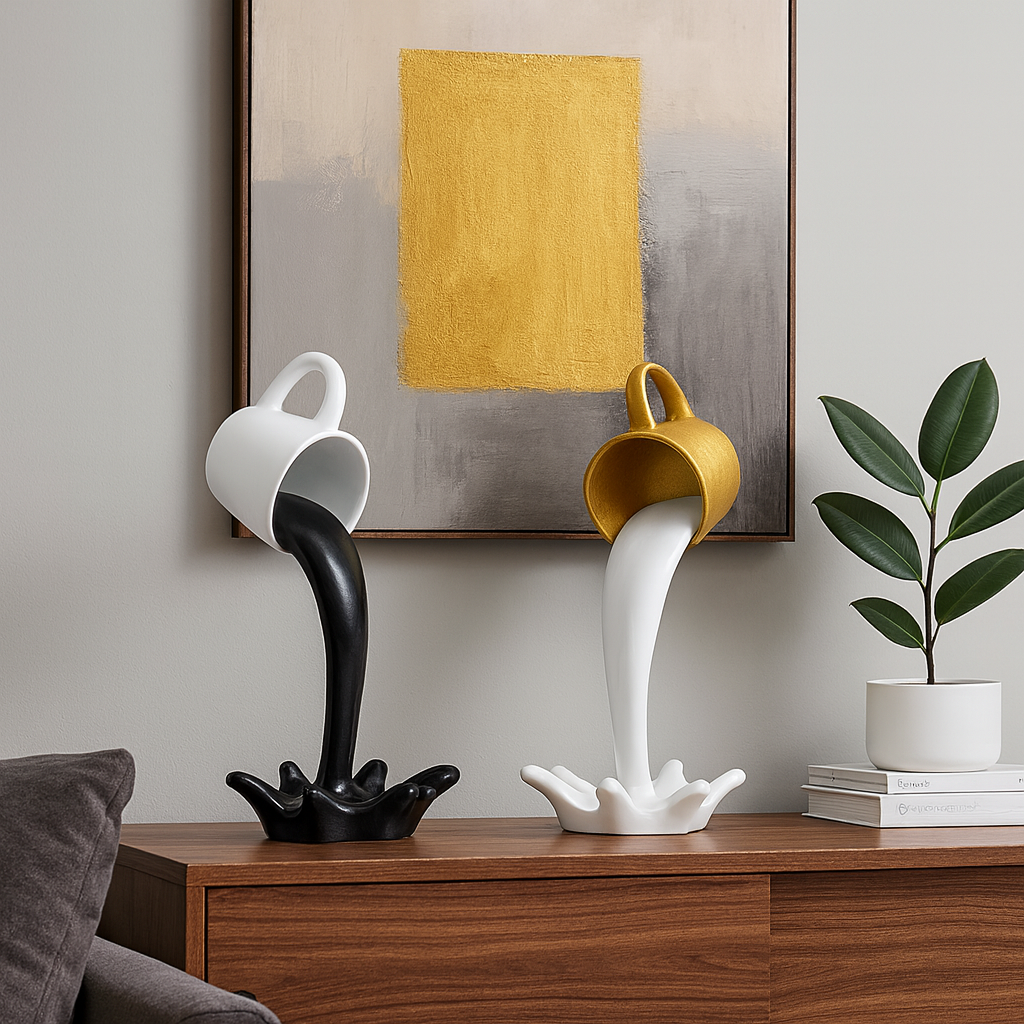 Ce lot de 2 tasses décoratives en résine, au design cascade créatif, ajoute une touche glamour et artistique à votre intérieur.