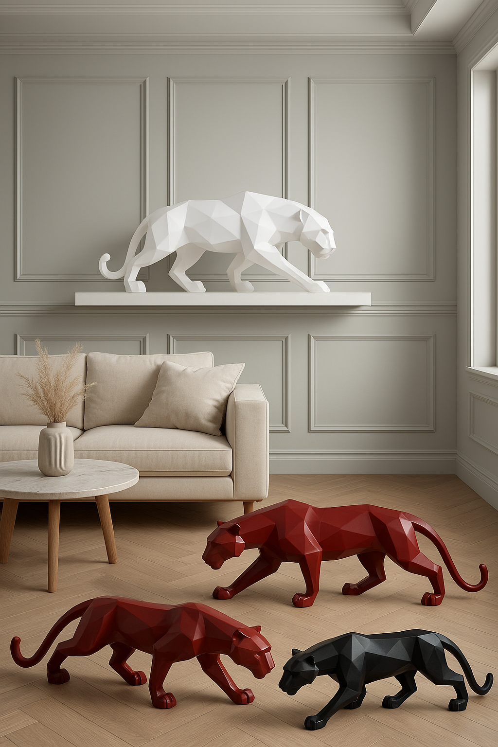 Apportez du caractère à votre intérieur avec cette statue de panthère grand format au design géométrique unique. Fabriquée en résine de qualité, elle est idéale pour sublimer un salon, un bureau ou une entrée.