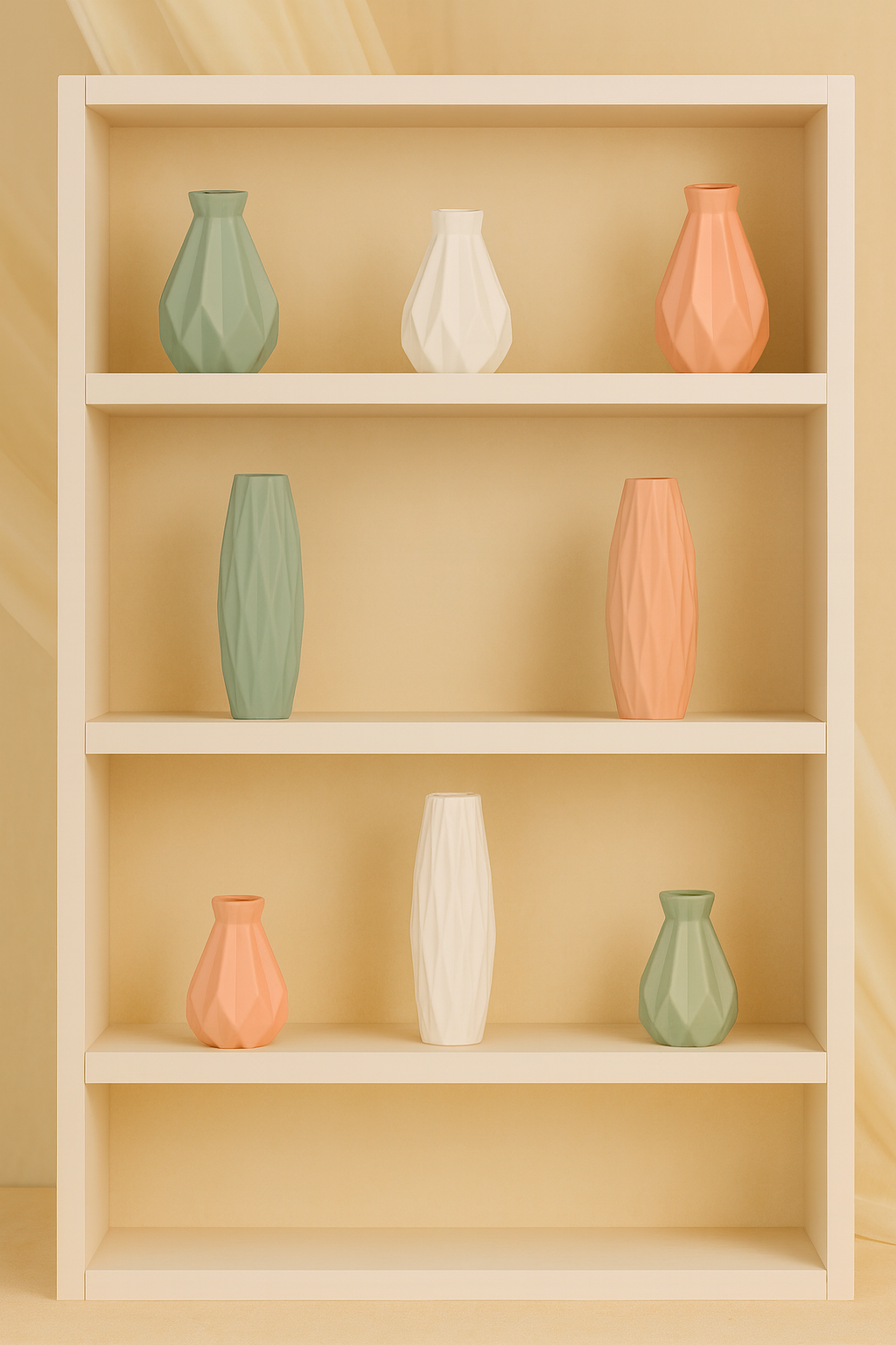 Fabriqué en plastique de haute qualité, ce vase est à la fois léger, résistant et facile à déplacer. Sa forme moderne et son fini mat ajoutent du charme à n’importe quelle pièce — que ce soit sur une étagère du salon, un rebord de fenêtre ou en centre de table.