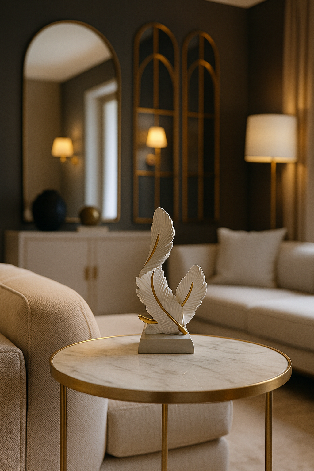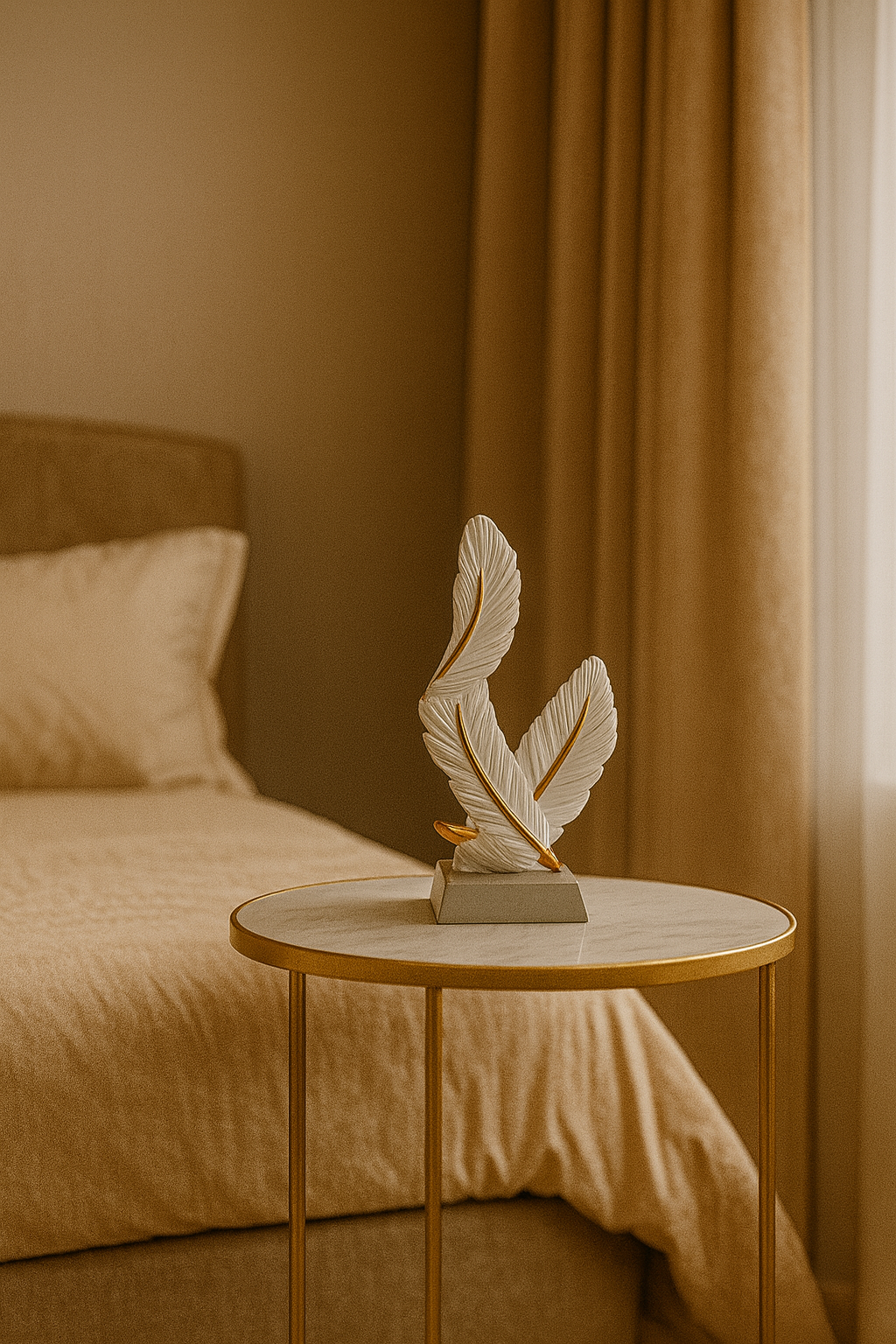Cette plume décorative blanche et dorée en résine apporte une touche luxueuse et raffinée à votre intérieur.