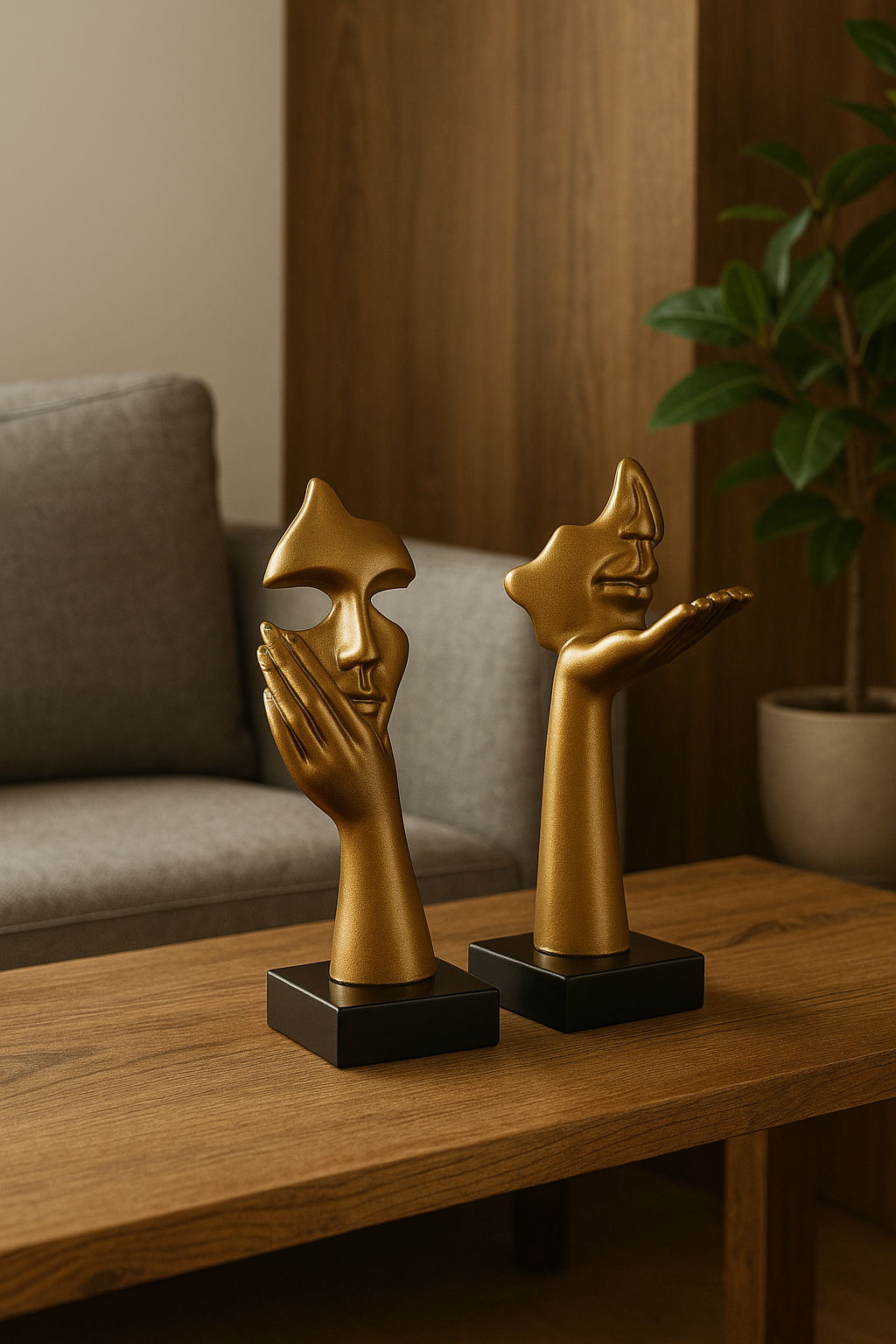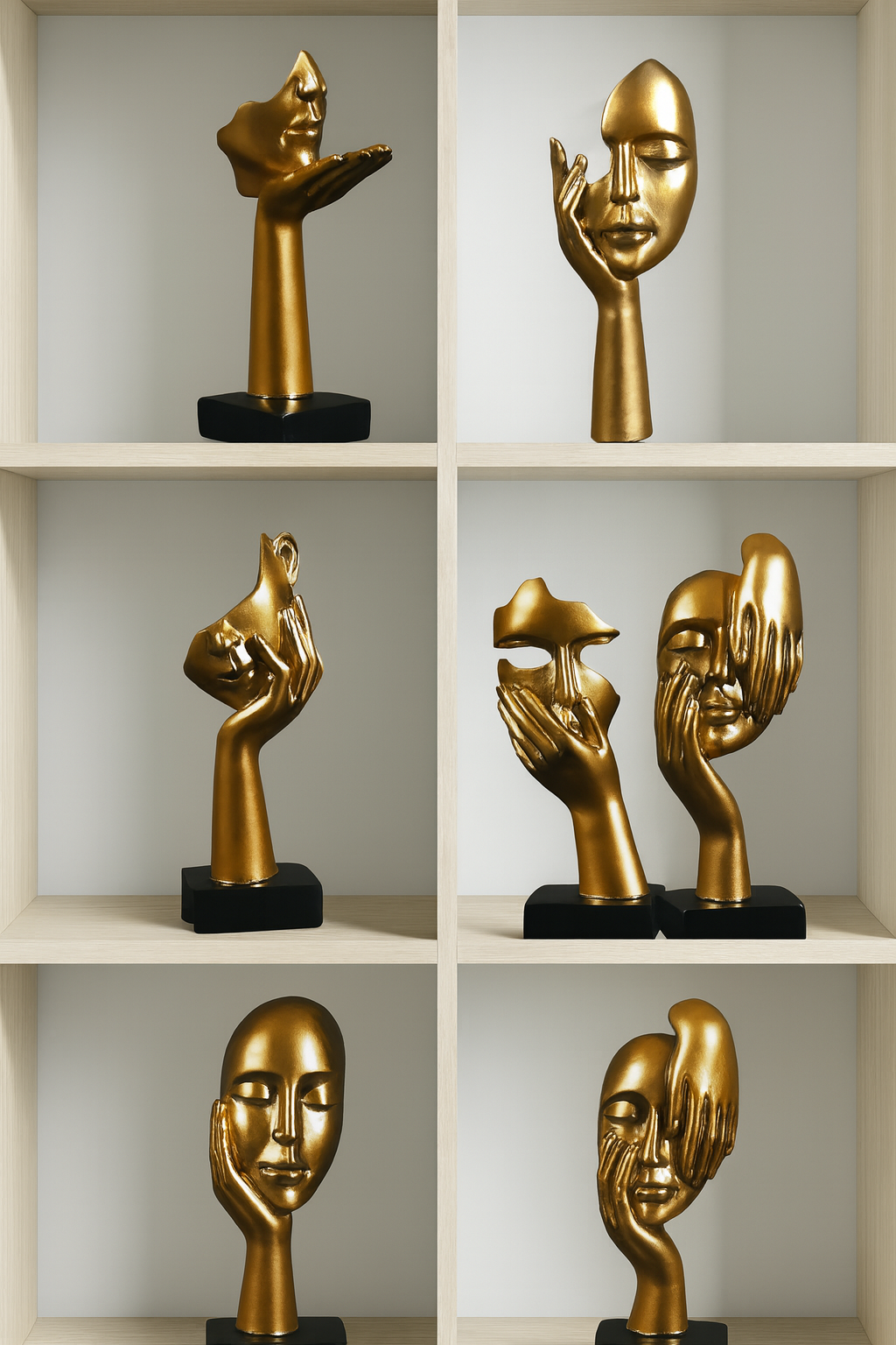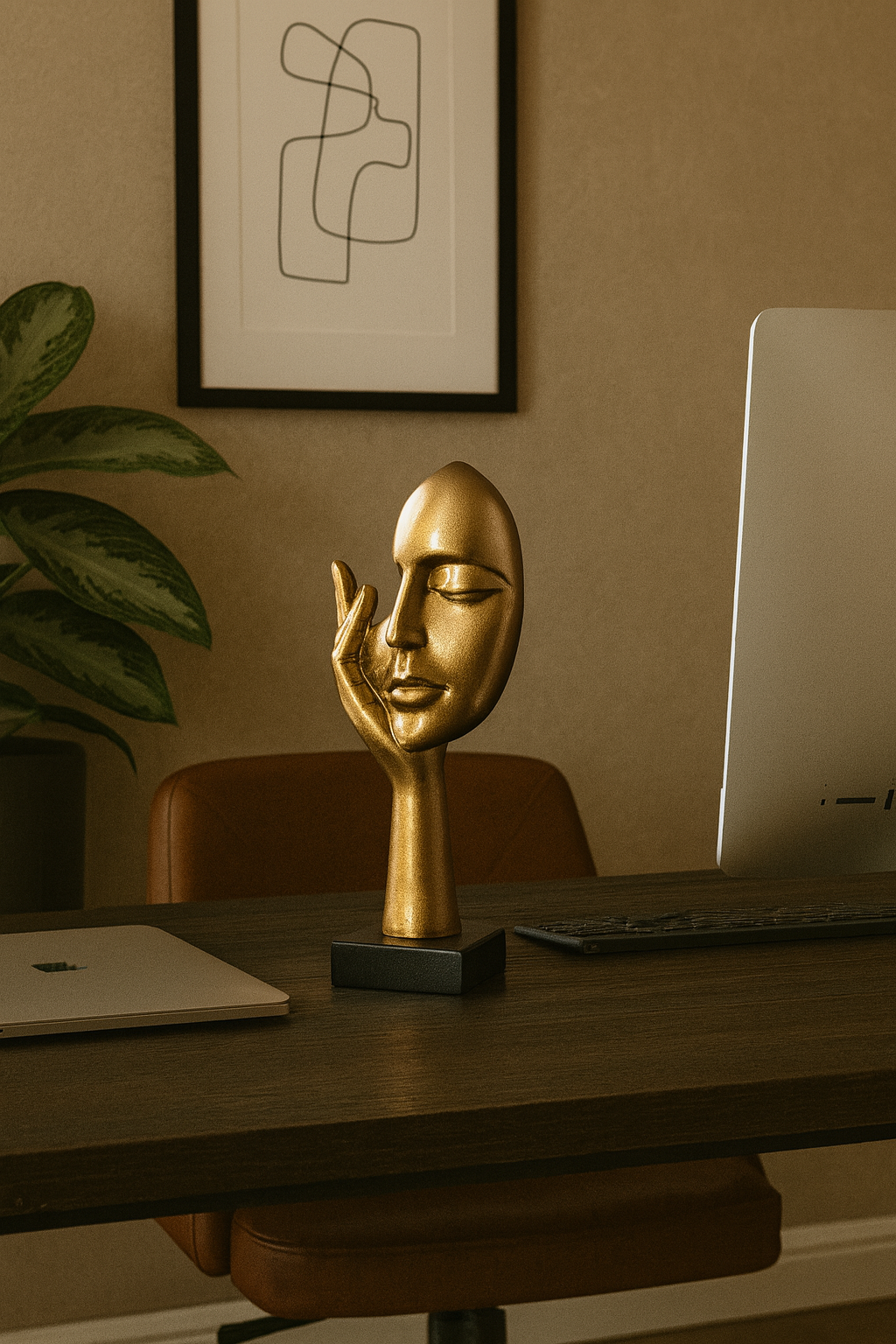 Apportez une touche d'art et de mystère à votre décoration avec cette somptueuse statue de masque abstrait doré. Conçue en résine de haute qualité, cette pièce élégante allie modernité et inspiration européenne pour transformer instantanément l’ambiance de votre intérieur.