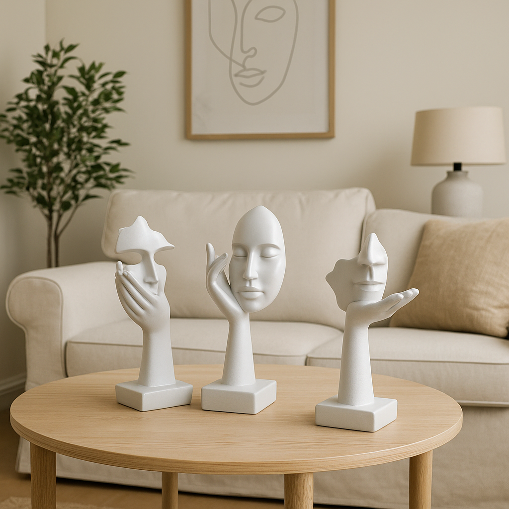 Apportez une touche d'élégance artistique à votre intérieur avec cette statue de masque abstrait en résine blanche. Inspirée de l'esthétique européenne contemporaine, cette figurine minimaliste se distingue par ses lignes épurées et son design énigmatique qui invite à la contemplation.