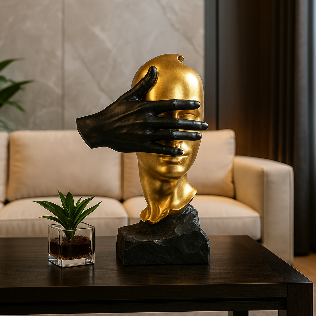 Cette sculpture abstraite noir et or apporte une touche de modernité à votre intérieur.