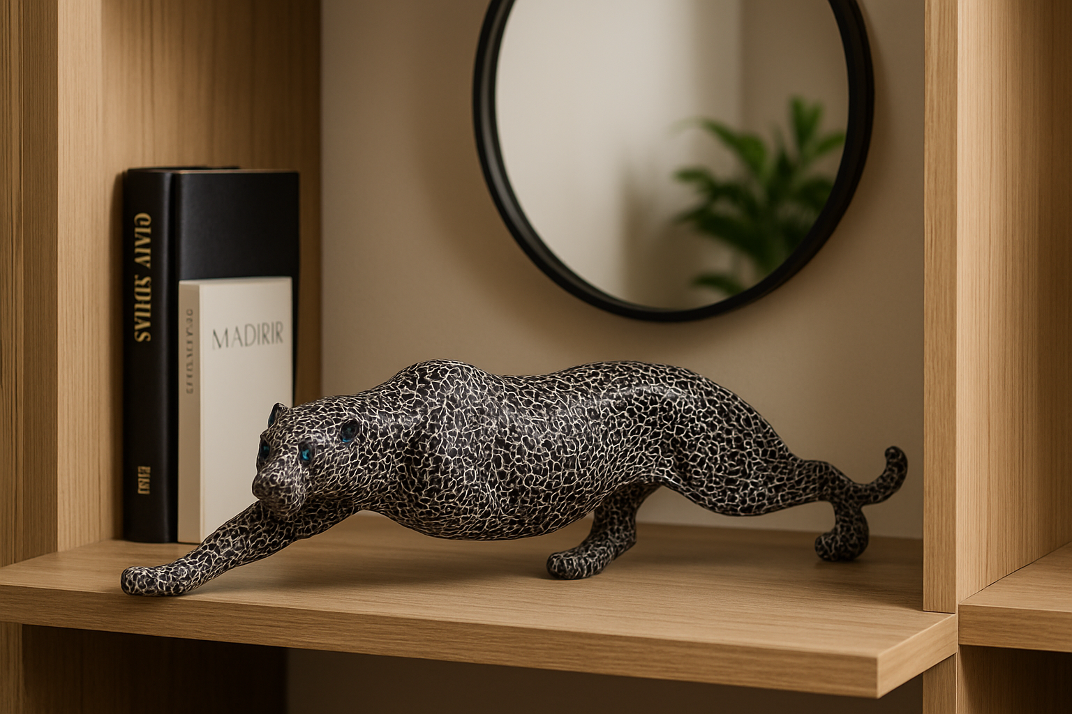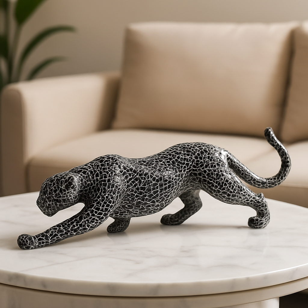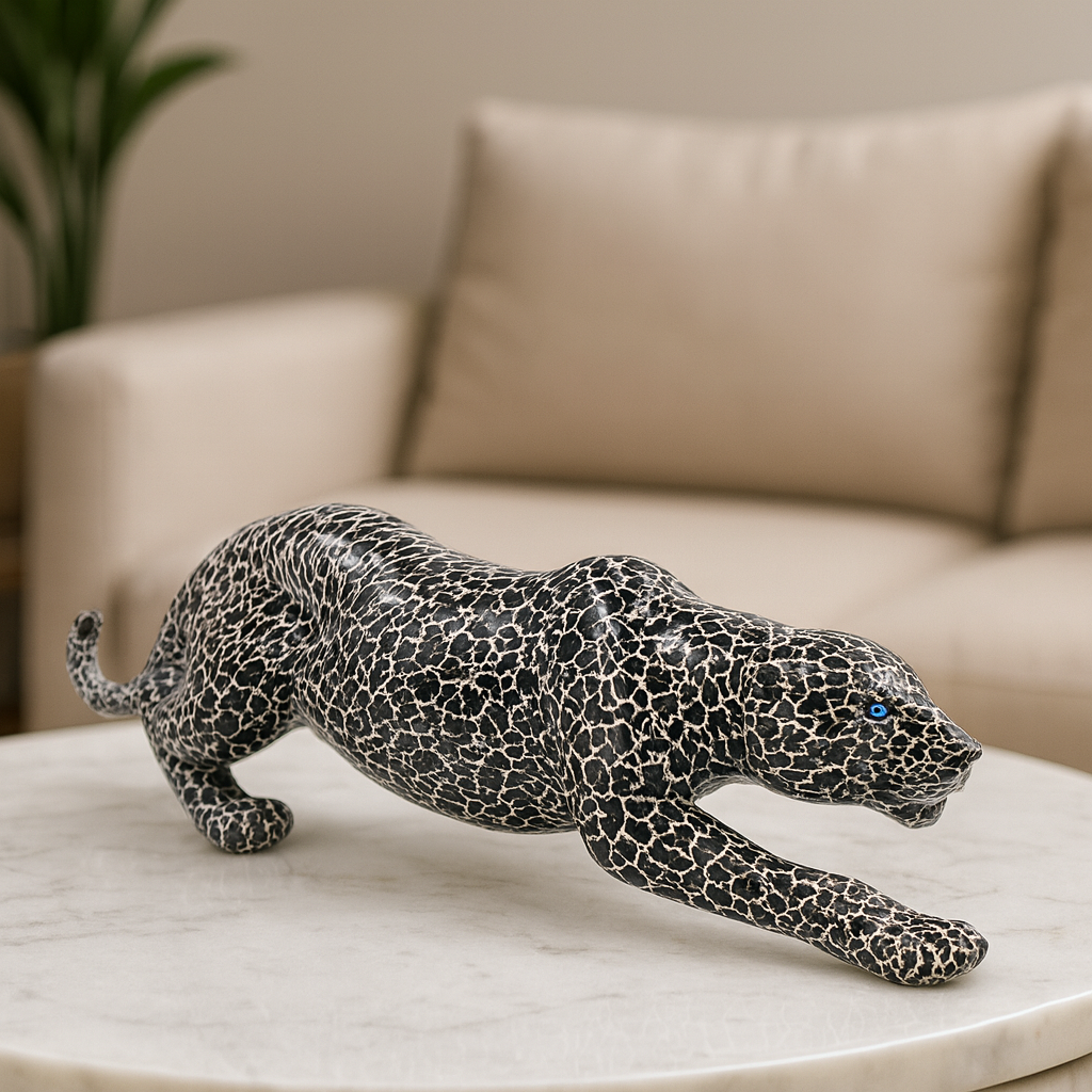 Cette statue de léopard géométrique en résine apporte une touche moderne et artistique à tout espace.