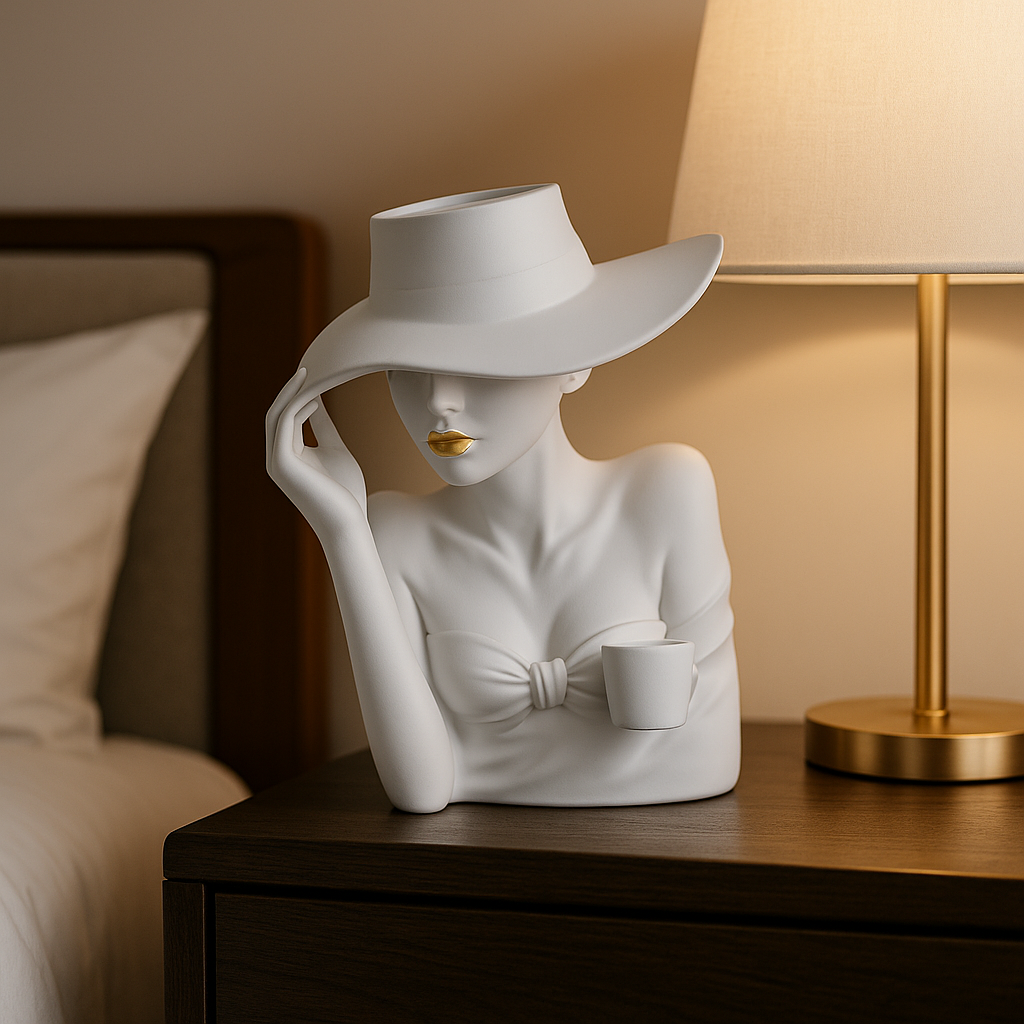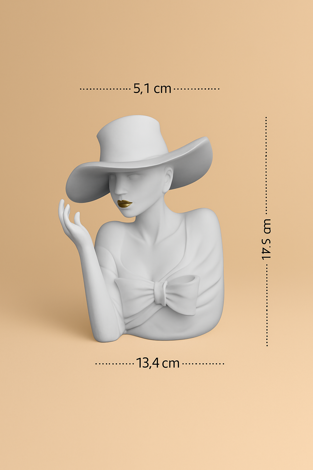 Ce vase décoratif en résine, inspiré du style nordique, présente une silhouette élégante coiffée d’un chapeau, idéale pour apporter une touche artistique à votre intérieur.