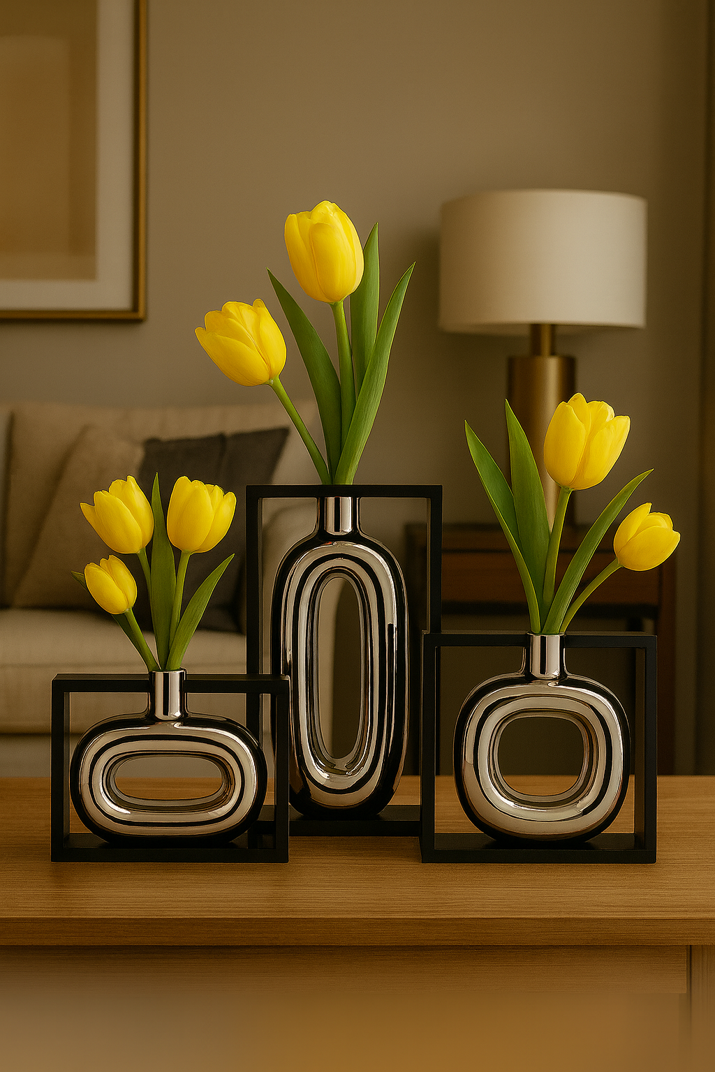 Son cadre ajouré et sa finition brillante apportent à la fois légèreté visuelle et élégance. Ce vase s’adresse à celles et ceux qui recherchent une décoration moderne, épurée et originale.